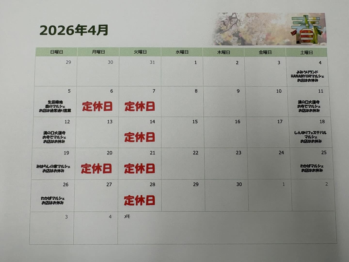 定休日 火曜日 第1・3月曜日
